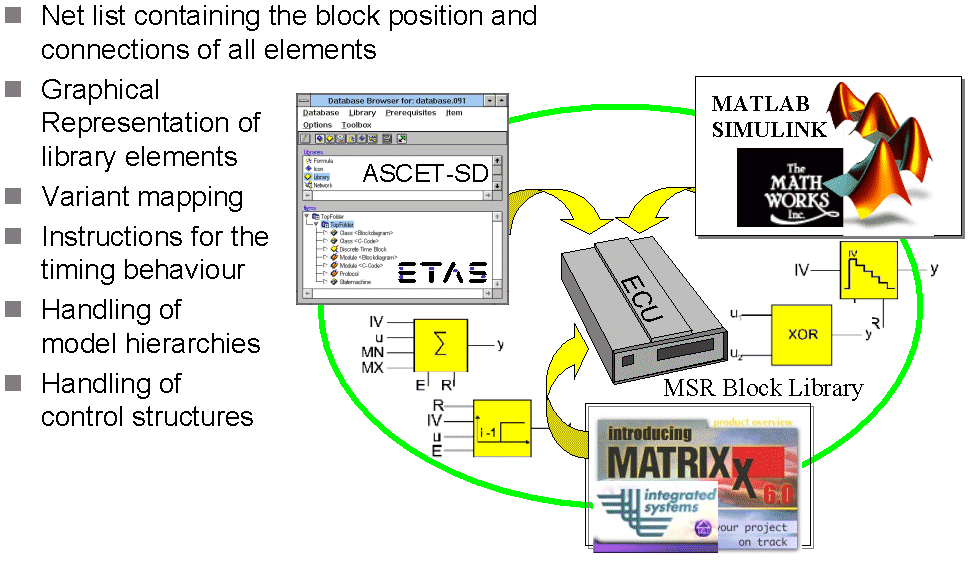 MSR MEGMA ObjectivesExchange of graphical model based on a standardized block library: MSR-LibraryThe library is downloadable and viewable as PDF. Tool Specific Control StructuresIn the current version of the MSR block library the complex control structures existing in all different tools are not yet taken into consideration. Model Exchange